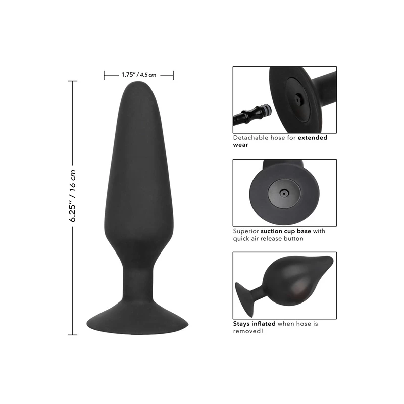 De COLT XXXL Pumper Plug is een oppompbare buttplug, gemaakt voor de ervaren gebruiker. Deze Pumper Plug is de grootste maat in deze reeks oppompbare buttpluggen van Colt. De plug heeft een gemakkelijk opblaassysteem met een knijpballon en bevat tevens een snel ontluchtingsventiel voor veilig en comfortabel gebruik. De Pumper Plug heeft een totale lengte van 13.25 cm en een diameter van 3.75 cm en is gemaakt van pure siliconen, volledig lichaamsveilig. Wij adviseren dit product te gebruiken met een glijmiddel op waterbasis.