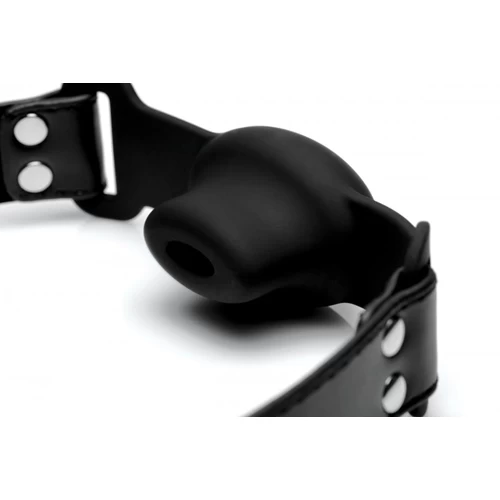 Deze stevige Holle Siliconen Gag heeft een siliconen mondstuk welke hol is, hierdoor heb je nog ruimte om te ademen. Het PU-leren bandje is te verstellen met een metalen gesp en het is comfortabel om te dragen.