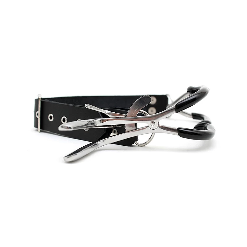 Deze Jennings mondklem is het perfecte attribuut om de mond zo wijd mogelijk open te houden als gewenst. De mondklem werkt op een ratelsysteem, waardoor deze eenvoudig versteld kan worden. De mondklem is gemaakt van roestvrij staal van medische kwaliteit en de verstelbare nekriem is gemaakt van echt leer.