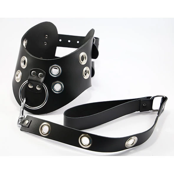 Stoere leren kraag inclusief riem versierd met open ringen