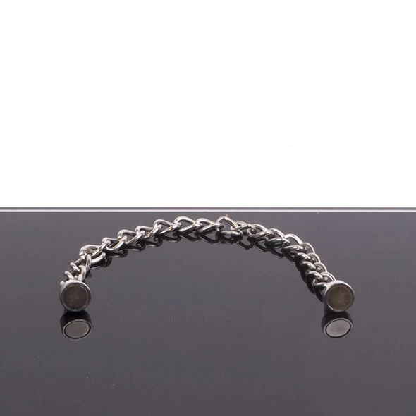 Beide helften van deze Magnetic Nipple Pinchers zijn verbonden met een stevige metalen ketting. Magneten zijn erg krachtig, wat er voor zorgt dat deze klemmen een echt martelapparaat zijn geworden. Dus voel je vrij om ze in één pijnlijke beweging uit elkaar te trekken.