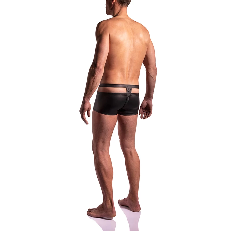 Deze geraffineerde M2237 Bondage Pants van Manstore is gemaakt van een zacht zwart wetlook micromateriaal met een zijdematte afwerking. Deze Bondage Pants is slim gecombineerd met een string. Boven de extra diepe tailleband zit op heuphoogte een tweede tailleband waaraan aan de voorkant de strap vastzit en aan de achterkant een stringlint die eigenlijk over de broek loopt.Β