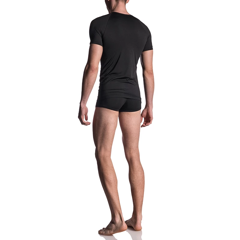Het strak gesneden, getailleerde shirt heeft korte mouwen, een V-hals en is gemaakt van extreem dunne, zeer elastische microfiber kwaliteit. Hij sluit perfect aan op je lichaam en is uiterst comfortabel om te dragen.Β Door de strakke snit en het zachte materiaal voelt het V-hals T-shirt niet alleen goed aan, het ziet er ook verdomd sexy uit.Β