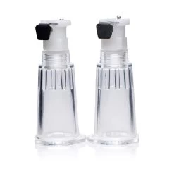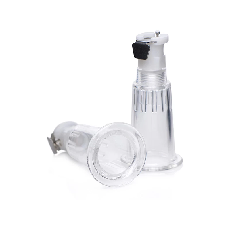 Dit alles-in-één Tepel zuig systeem heeft zelfs een meter om de drukopbouw te zien terwijl je tepels tegelijkertijd worden gezogen! Tepelaanzuiging verhoogt de gevoeligheid en stuwt tijdelijk op omdat het een verhoogde bloedsomloop in het gebied trekt. De sensatie verhoogt seksuele ervaringen zowel met een partner als solo. Plaats de doorzichtige cilinders over uw tepels en gebruik indien nodig glijmiddel om ze luchtdicht te maken. Knijp in de trekker hendel om het vacuüm te starten en bekijk de voortgang op de manometer. De slang bevat 2 individueel regelbare luchtstroomkleppen om de vacuüm voor elke tepel aan te passen. Als u tevreden bent met uw gezwollen knoppen, kunt u met een snel ontgrendelingsventiel de druk snel verlagen, waardoor uw tepels effectief worden vrijgemaakt.