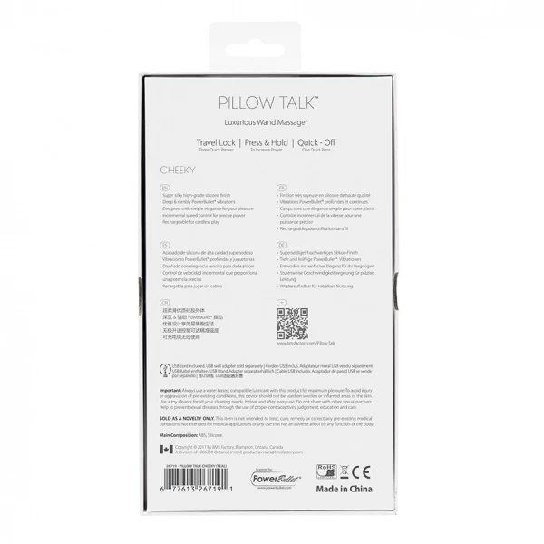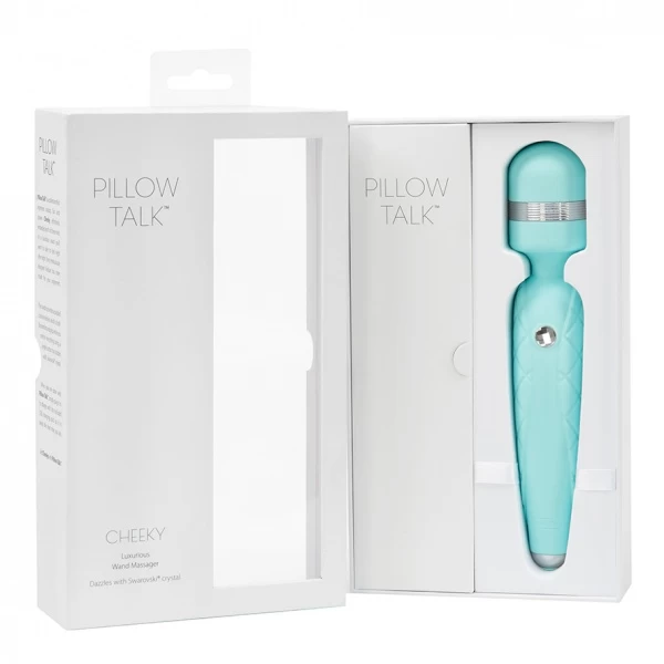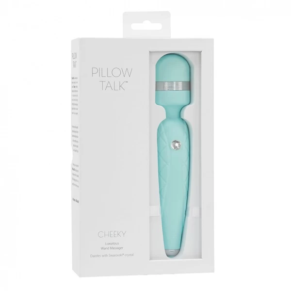 Pillow Talk Cheeky Mint is een trillende wand vibrator met diepe, krachtige vibraties, aangedreven door PowerBullet-technologie. De Pillow Talk Cheeky is ontworpen met eenvoudige elegantie en een Swarovski-kristal button en heeft een zijdeachtige siliconenafwerking en een incrementele snelheidsregeling voor nauwkeurig vermogen. Met de oplaadbare batterij en het meegeleverde USB-laadsnoer is Pillow Talk altijd klaar voor gebruik.
