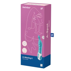 Dankzij de A-Mazing 2 A-Spot Stimulator van Satisfyer wordt de A-spot gestimuleerd: dit is de erogene zone tussen de G-spot en de baarmoederhals. A-Mazing 2 heeft een lange, licht gebogen schacht, wat zorgt voor een diepe A-spot stimulatie. Daarnaast heeft de A-Mazing 2 een gegroefde textuur aan de bovenkant van de vibrator. Het ergonomische, ringvormige handvat en de stevige body zorgen ervoor dat A-Mazing 2 gemakkelijk en comfortabel is vast te houden tijdens het gebruik. De top van de vibrator is flexibel, waardoor andere erogene zones ook gestimuleerd kunnen worden. A-Mazing heeft 2 krachtige motoren en stimuleert de gebruiker met 12 verschillende vibratie programma’s die eenvoudig te navigeren zijn via het bedieningspaneel op de vibrator.
