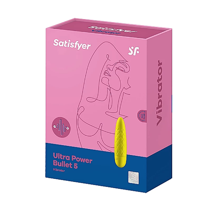 De Ultra Power Bullet 5 Yellow van Satisfyer is een kleine en machtige, krachtige bullet-vibe. De Ultra Power Bullet 5 heeft een stijlvolle, getufte textuur voor extra stimulatie en een spitse punt, perfect voor het richten op een specifieke plek binnen een erogene zone. Dankzij het gewatteerde ontwerp en de volumineuze vorm zorgt deze mini vibrator voor een goede grip en kun je genieten van een verscheidenheid aan geneugten. Krachtige vibratiepatronen zorgen voor intense stimulatie van de clitoris. Dankzij de waterdichte (IPX7) afwerking kan dit speelgoed veilig in water worden gebruikt en is het gemakkelijk schoon te maken.