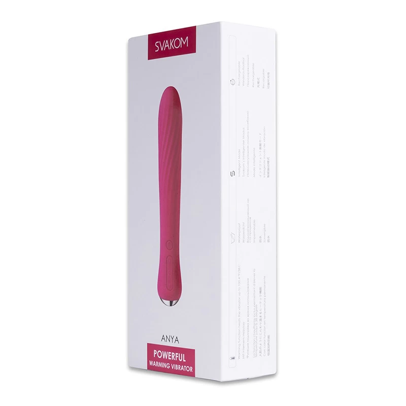 Svakom Anya is voorzien van een verwarmende functie en heeft een geribbeld design voor betere stimulatie. Met 26 verschillende frequenties zal er altijd wel één naar wens bij zitten. Daarnaast beschikt Anya ook over SVAKOM Intelligent Mode, is ze waterproof en USB oplaadbaar. Rechargeable waterproof vibrator with Ribbed design for better stimulation.