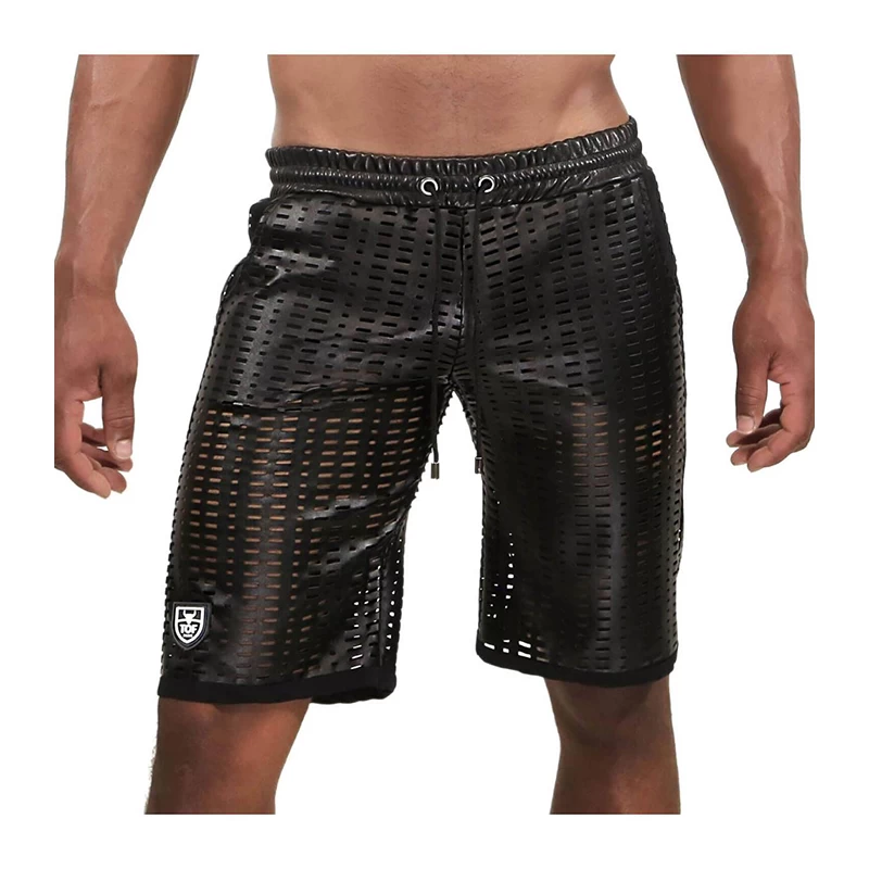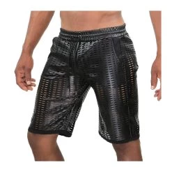 Geperforeerde Centurion Bermuda Short met een grote snit, gemaakt van realistisch imitatie leer.